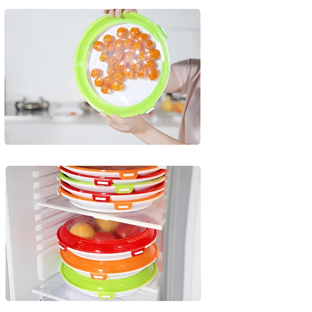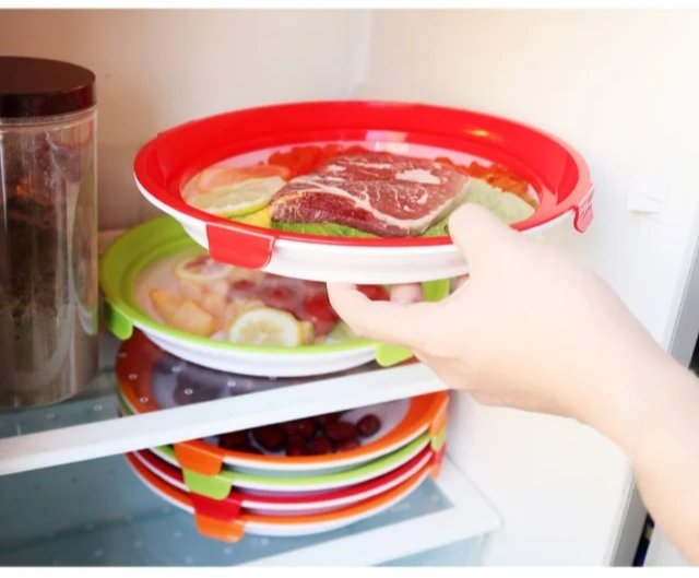 다채로운 색상의 원형 보존 식판